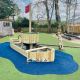 To enhance the area, we supplied and laid 69m² of Purple MLD Artificial Grass Surfacing with 34m² of double layer safety shockpad around the new Birds Nest Swing. Additionally, we installed 140m² of Natural MLD Artificial Grass Surfacing with a 20.5Lm Black Artificial Grass Trackway, 2no Zebra Crossings, 1no 0-10 Number Snake, 1no A-Z Alphabet Block, and 38m² of single layer safety shockpad around the new Maxi Wildwood Play Tower. The area also features 36m² of Purple MLD Artificial Grass Surfacing and 59m² of 20mm deep Blue Rubber Wetpour Surfacing.
