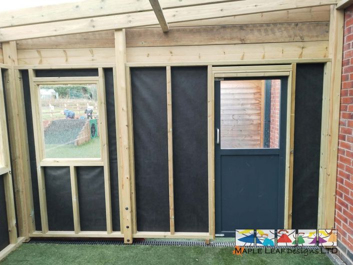 At Ivy Bank Primary School in Macclesfield, the Maple Leaf Designs team created a versatile area with the addition of a Bespoke Shelter, Artificial Grass Surfacing, a Lockable Sandpit with HDPE Rolling Lids and Wetpour Spheres.