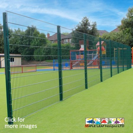 Our metal fencing options can also be supplied in the following styles: bow top, ‘play spec’ bow top and various types of reinforced meshed fencing. Reinforced mesh fencing is great for enclosing a sporting area, where ball games are frequently played.