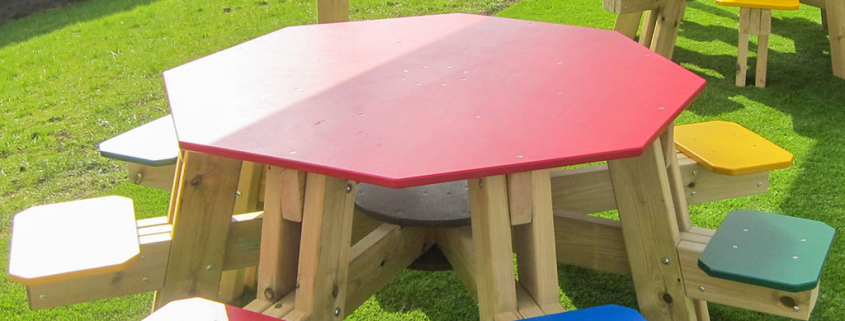 So why not get creative? Seating is such a flexible tool for dividing and creating areas in your playground for a multitude of different activities from quiet reading to arts and crafts, and they’re a perfect way to encourage your children to develop socially by creating safe areas for them to converse and play with their friends.