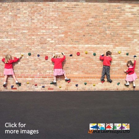 The beauty of a traverse wall though is that, unlike a vertical climbing wall, you don’t need to worry about fall-height. No special equipment or safety surfacing is required – only the usual supervision that you would provide in any playground environment.