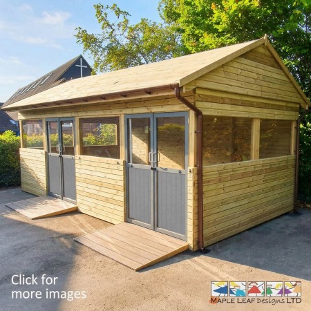 • Our typical Mobberley Shelter with Windows are supplied with Timber Benches and guttering. We also offer a polycarbonate window option if required, otherwise the window bays are left open for maximum airflow.