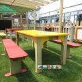 The benches and table can be manufactured to various heights to suit your needs, and we will provide you with a choice of colours to choose from.