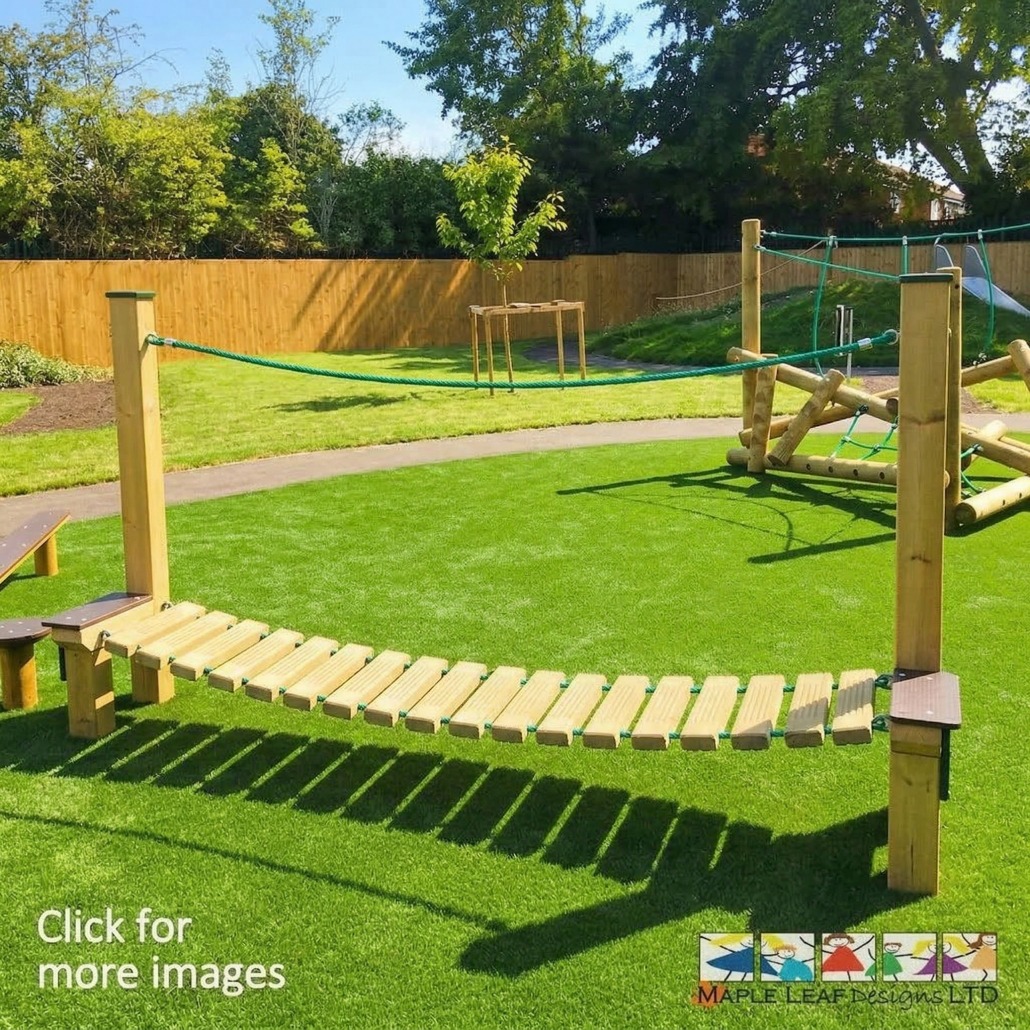 The Balance Bridge offers a fun and dynamic way for children to build balance, coordination, and focus as they navigate the moving timber slats. The wobbling walkway adds an exciting challenge, while the rope provides added stability for young adventurers. Plazdeck textured footplates on either side ensure a sturdy start and finish, making it a perfect addition to any trim trail.