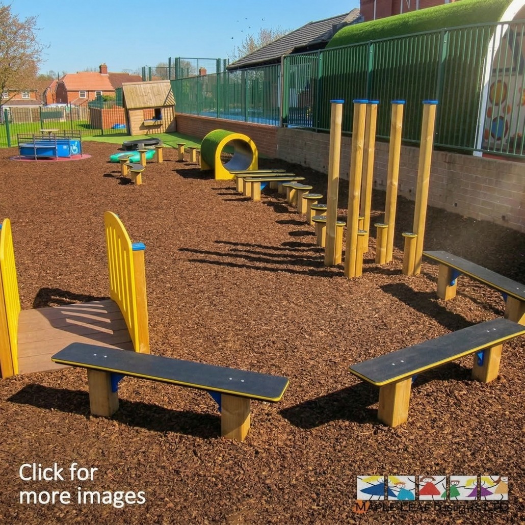 The HDPE Balance Trail offers a unique take on a typical Trim Trail, providing an unobtrusive and functional addition to the playground. It makes good use of empty areas, transforming them into engaging play spaces. With a variety of units including a bridge, tunnel, log walk weaver, curved balance beams, large balance beams, small balance beams, and stepping stumps – each component offers individual benefits for enhancing balance, coordination, and strength in children.