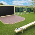 Engage imaginative play and promote creativity outdoors with exciting performances and classroom productions. This platform provides children with a space to perform plays, musicals, dance routines and drama performances in front of their peers and teachers. Take the classroom outside into the playground, where dancing, acting, singing, performing and storytelling will have a dedicated area thanks to the Deck Stage. This is a great way to introduce children to learning outdoors, allowing children and teachers alike to participate in outdoor teaching, reading and role-play activities. The Deck Stage is perfect for building confidence, encourage drama play, public speaking and teamwork.  We manufacture Stages in various sizes to suit your requirements, but our most popular size is the 2.4m x 2.4m stage with 2no chamfered front corners. This works perfectly with our 2.4m x 1.2m Magnet Compatible Chalkboard and Timber Bench Seating, as seen in the images.
