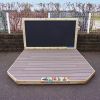 This multi-functional play and learning space encourages confidence, communication, and self-expression. Children can role-play, practise public speaking, or lead group activities, all while developing social and language skills in a relaxed, outdoor environment. The addition of a chalkboard adds creative freedom for drawing, writing, or planning performances, while the decked stage and bench seating create a clear performance zone that supports both structured learning and spontaneous play.