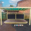 The Double Chalkboard & Stage is a 4.8m x 2.4m Stage, with 2no chamfered front corners. This Stage is also perfectly matched with 2no 2.4m x 1.2m Magnet Compatible Chalkboards. Engage imaginative play and promote creativity outdoors with exciting performances and classroom productions. This platform provides children with a space to perform plays, musicals, dance routines and drama performances in front of their peers and teachers. Take the classroom outside into the playground, where dancing, acting, singing, performing and storytelling will have a dedicated area, thanks to the Deck Stage. This is a great way to introduce children to learning outdoors, allowing children and teachers alike to participate in outdoor teaching, reading and role-play activities. Stages are perfect for building confidence, encouraging an interest in theatre, public speaking and teamwork. This Stage works well with our Magnet Compatible Chalkboard and Timber Bench Seating options.