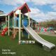 The Jumbo Smile Play Tower consists of two towers with roofs, one open tower, net climber, solid arched bridge, steps, fire mans pole, artificial grass covered tunnel, climb block ramp, HDPE climb wall and a stainless steel slide. The Jumbo Smile Play Tower is designed to suit Reception, EYFS and KS1 but can be modified to suit other ages if required.
