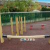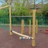 Balance is a key component of any playground trim trail, and our Jungle Rope is an excellent example. The wide rope is suspended between sturdy timber posts, challenging children to balance as they move from one side to the other. The metal bar above provides additional support, allowing them to maintain stability with their hands while crossing. This setup helps improve balance, coordination, and upper body strength.