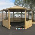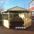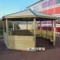 Easily conduct outdoor lessons and promote learning opportunities with our Octagonal Shelter with Half Sides. Not only does this shelter provide you with a space for educating children, it also offers the children with a secluded, calming area to retreat to during lunchtime and breaktimes. Our Octagonal Shelters are constructed from timber and fitted with Benches. Items such as Chalkboards and Play Panels can also be added to the interior sides for additional play value.