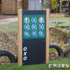 Our OXO Game Panel is an excellent addition to any playground. The premise is simple: the first person to make a row of three from their shape pieces wins. But, you’ll each be trying to stop the other player doing the same, and that’s where the challenge starts! We can fit these panels as either wall-mounted or free-standing, and all playing pieces are included. This is a fun take on the classic Noughts and Crosses, Tic-Tac-Toe game that children love!