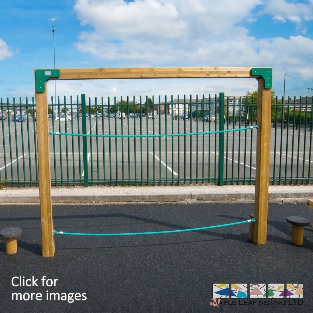 Your playground Trim Trail should always include an element of balance, and our Parallel Rope is an excellent variation on the classic tightrope design. Two steel-core ropes hang between the sturdy timber frame, allowing children to sidestep along the bottom rope while using the top rope for support. This activity helps improve balance, coordination, and upper body strength as kids navigate from one side to the other.