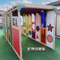 The roof of the Inclusive Sensory Tunnel has multicoloured translucent panels for visual stimulation and is fitted with wind chimes at either end. Along the sides there are a multitude of colourful, translucent panels for children to peek through. On the inner walls of the tunnel, Music Panels are fitted to deliver sound and resonance play. A variety of sensory shapes of all different textures are also affixed to the sides. These features encourage social interaction, allowing children of all abilities with a space to freely play together.