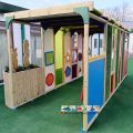 On the exterior, a curved planter featuring Small and Large Insect Totem Hotels is affixed to the side. This feature is a fantastic way to incorporate your children’s favourite plants, but also doubles as a habitat for insects – promoting biodiversity and creating a visually appealing focal point in your playground.
