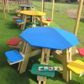 Encourage socialisation and teamwork with our Sproston Eight Seat Picnic Table. Manufactured with a timber frame and various coloured HDPE top/seats, this seating solution will fit right into any playground theme.