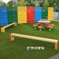 Timber Bench Seats with HDPE Bookend Wall on Artificial Grass