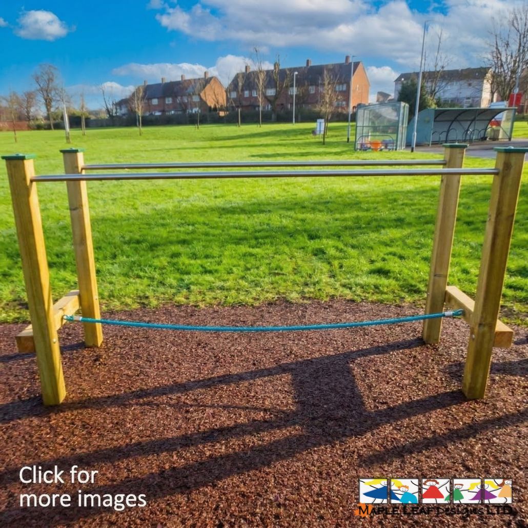 The Tightrope Bridge is an excellent addition to any playground Trim Trail, challenging children to improve their balance and coordination. They must walk carefully from one side to the other, one foot in front of the other, while using the parallel bars for added support. The ropes are wrapped around a steel core, providing durability and ensuring long-lasting safety for all users.