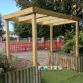 We offer our standard Timber Pergola in various sizes to suit your playground. The pergola provides a perfect outdoor classroom, waiting area or calm area in your playground. They are available with and without the optional planter seating system inside the pergola. The main picture depicts a 6m x 6m pergola with a planter seating system.
