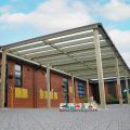 The Polycarbonate Roof provides instant shelter from the rain, as well as shade on sunny days. This shelter also equips your playground with the ideal outdoor classroom – a way to bring the curriculum into the great outdoors. We can install a variety of Seating options beneath the pergola, along with Play Panels, Mark Making Panels and wind breaks.