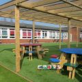 Our Timber Pergola with Polycarbonate Roof can be manufactured bespoke to suit your space and playground measurements. Whether it’s a small nook, or the length of your building, we can turn your vision into reality!