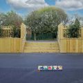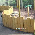 Timber Stockade Fencing is available in heights up to 1.5m, with natural, stained or painted finishes. Stockade can be installed to follow complex and detailed routes; this provides you with a natural appearing retaining wall for banks and split level playgrounds, but acts also as a barrier/fence. Stockade can also be used to create exciting play mazes and zones within Natural Play areas.
