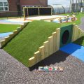 Our Tunnel Mounds have proven to be a popular feature of many playgrounds, adding an exciting element to an artificial grass area or as part of a roadway for kids to ride their trikes over. From early ages onwards, a child’s desire to crawl is undeniable, and the tunnel mound is a great way to satisfy this exploratory urge. Clad in strong and durable timber and then surfaced with artificial grass, our Tunnel Mounds make a wonderful playground feature that will keep the children entertained and well-exercised for years.