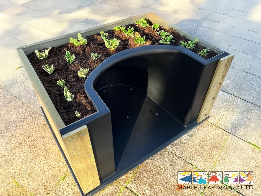 Our latest inclusive wheelchair planter which can be installed singular or in multiples to create a collective group area. They are constructed from moulded recycled and 100% recyclable polyethylene with FSC timber.