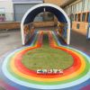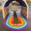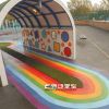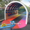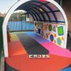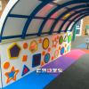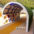 The roof of the Inclusive Sensory Tunnel has multicoloured porthole window shapes for visual stimulation and is fitted with wind chimes at either end. Along the inside, are a multitude of colourful shapes, some with engravings, others with tactile materials and mirrors. On the opposite side of the tunnel, Music Panels are fitted to deliver sound and resonance, along with a built-in talk tube speaker system that spans the length of the tunnel. This encourages social interaction, allowing children of all abilities with a space to freely play together.
